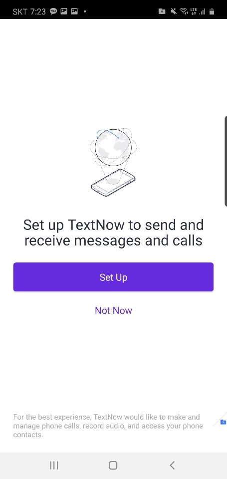 텍스트 나우에 회원가입을 하시고 나면 세팅을 할 것인지 물어볼 것인데 그냥 스킵하시면 됩니다.