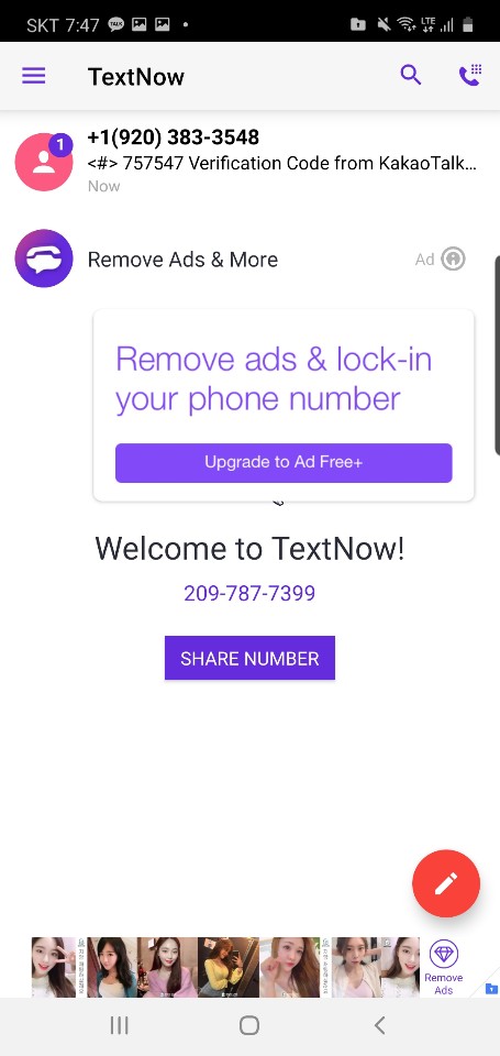 확인을 누르면 TextNow앱으로 인증번호가 갈 겁니다.