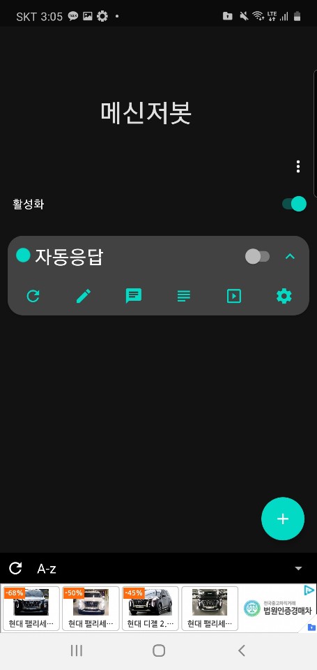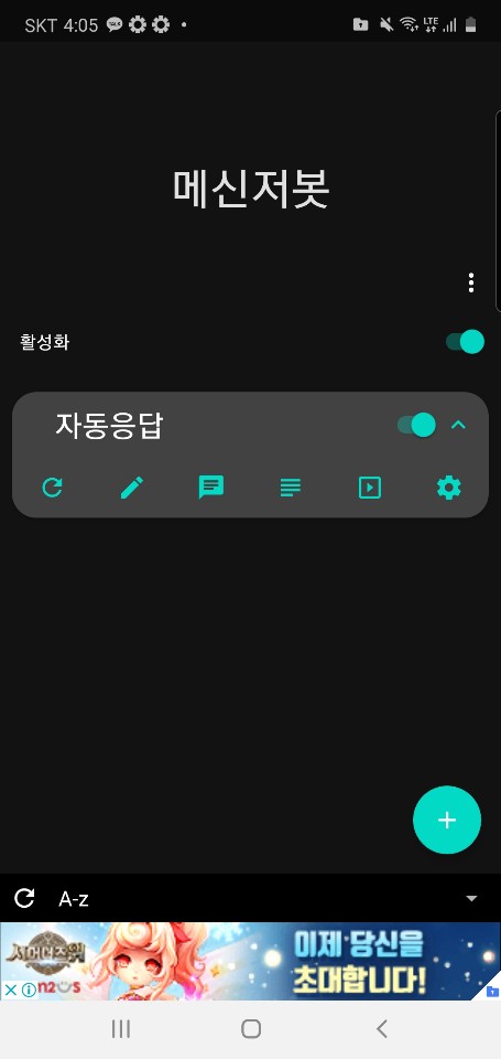 확인을 누르면 목록에 자동응답 이라는 게 뜰 것입니다.